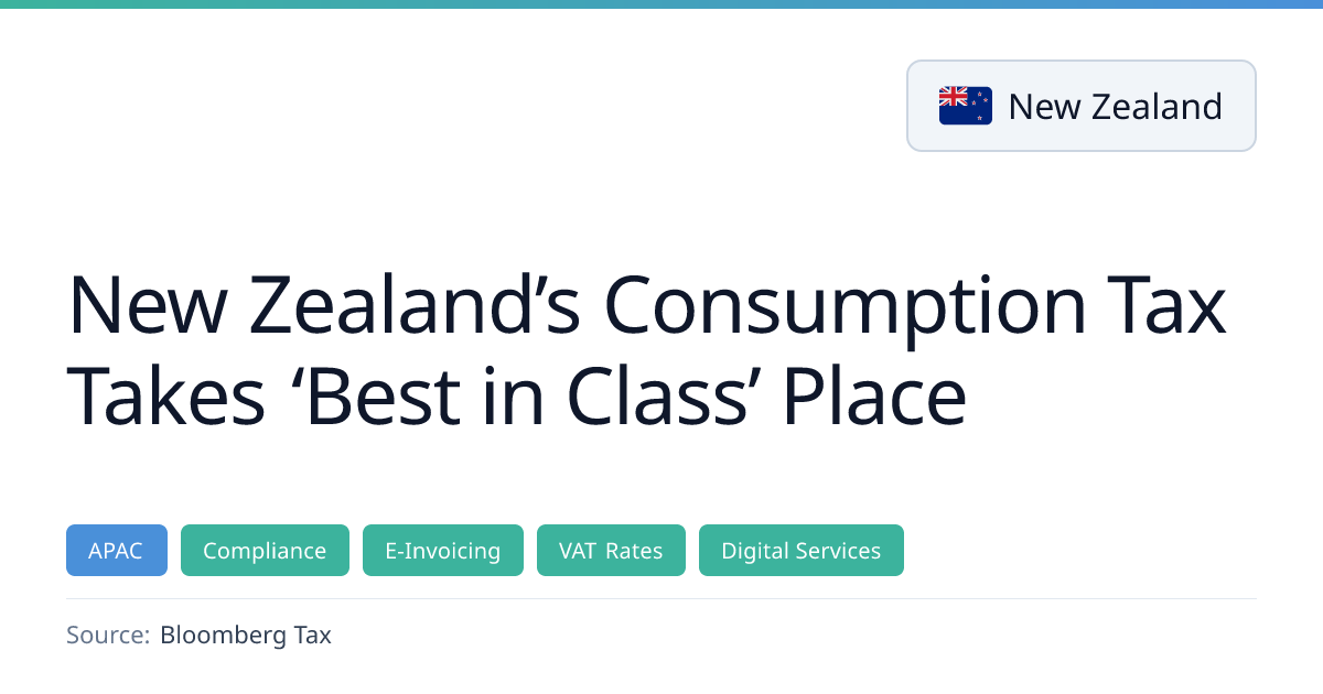 New Zealand’s Goods and Services Tax (GST) is highlighted as a model consumption tax, featuring a single 15% rate, minimal exemptions, and a broad base that yields a stable revenue stream. The system’s simplicity reduces compliance burdens and has been praised for its efficiency and neutrality. Key innovations include zero‑rating business‑to‑business financial services and excluding most crypto assets from GST.