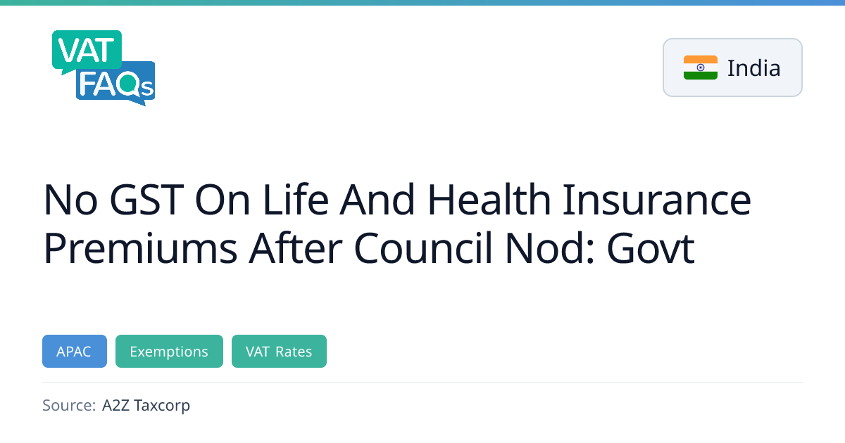 India's GST Council has granted an exemption on individual life and health insurance premiums, removing the 18% GST. The decision, announced in a written reply on 5 February 2026, covers all individual policies including family floater plans. IRDAI confirmed that insurers have passed the benefit to policyholders without raising premiums.