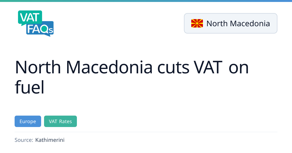 North Macedonia has temporarily reduced fuel VAT from 18% to 10% to curb price rises triggered by the Middle East conflict. The measure, announced by Prime Minister Hristijan Mickoski, takes effect from midnight on 23 March 2026 and is set to last two weeks. Petrol prices are expected to stay flat while diesel may rise slightly by €0.04‑€0.05 per litre.