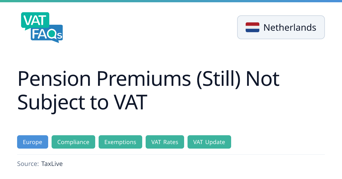 Dutch court rulings in September 2025 declared pension premiums taxable at 21% VAT, but the Minister of Finance has rejected adopting these rulings, maintaining the current VAT-exempt status until a Supreme Court decision. The rulings apply to mandatory sector pension schemes, while voluntary schemes remain unaffected. If the Supreme Court confirms the premiums are taxable, lawmakers may introduce corrective measures.