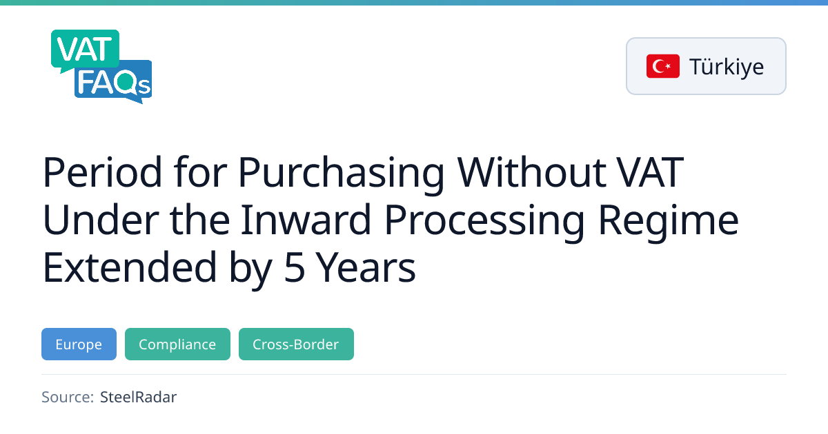 Turkey’s Parliament extended the VAT‑free period for inward processing regime (IPR) purchases from 31 December 2025 to 31 December 2030. The change aims to prevent exporters and manufacturer‑exporters from having to pay VAT upfront on domestic raw materials, thereby protecting cash flow and competitiveness.