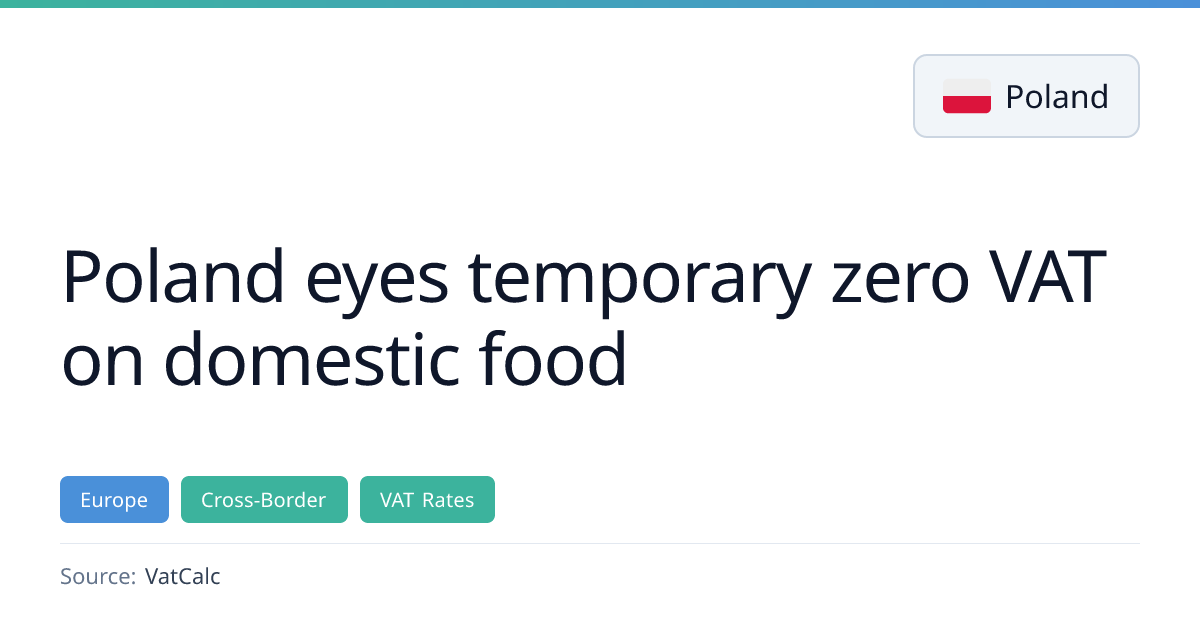 This summary was published on VATfaqs.com on 18 April 2026. It relates to VAT developments in Poland. The original source is VatCalc.