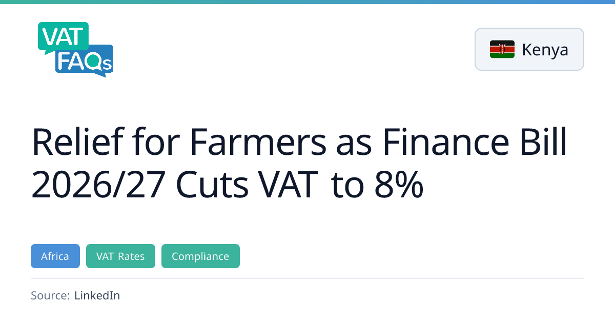 Côte d’Ivoire has introduced a 9% value‑added tax on animal feed, production inputs and related packaging, effective 17 January 2026. The measure replaces a previous exemption that applied until the end of 2025 and is part of the 2026 Finance Law tax reform. The reduced rate, chosen over the standard 18%, aims to limit the impact on the livestock sector while still bringing these goods into the VAT framework.