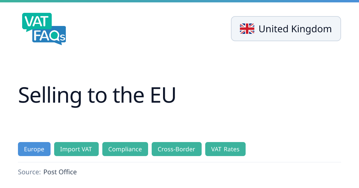 The Post Office provides guidance for UK sellers on how the Import One Stop Shop (IOSS) scheme applies to sales into the EU. Items under €150 can be covered by IOSS, allowing buyers to pay duties and fees at purchase, while items over €150 or sold outside IOSS require duties to be paid by the recipient or via pre‑paid services. Gifts under €45 are exempt from duties and fees.