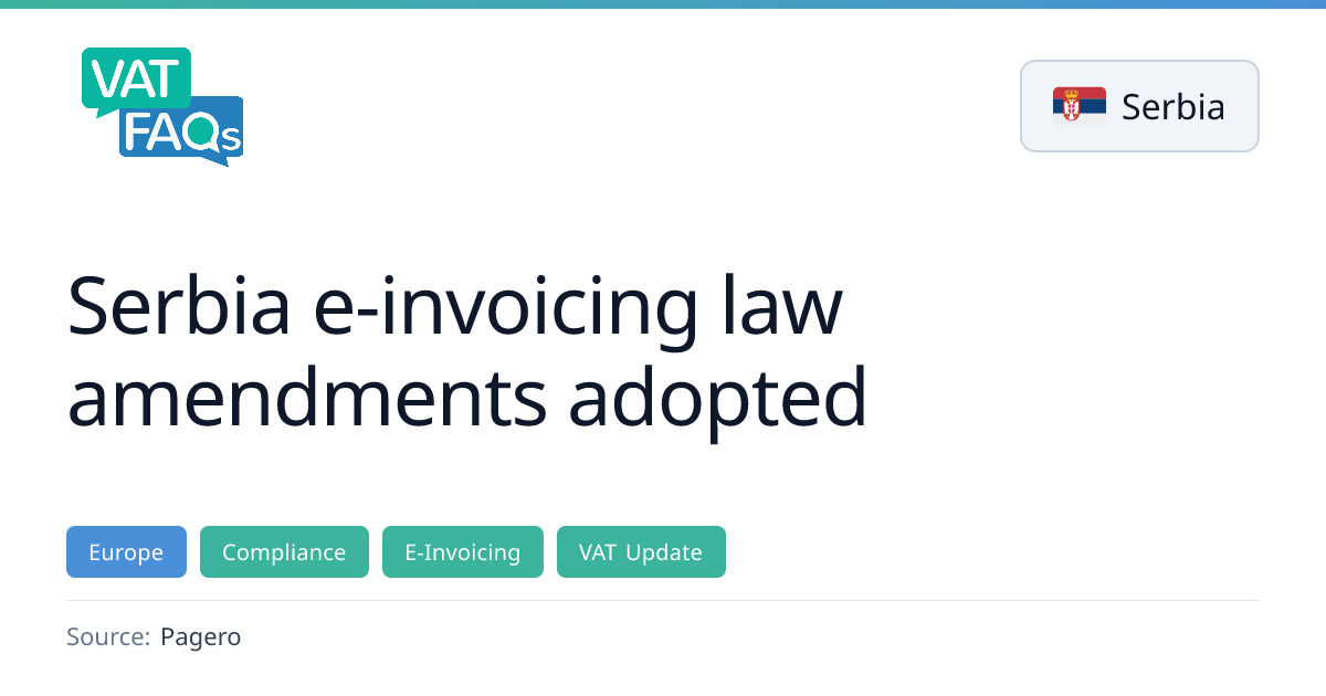 Serbia’s new e‑invoicing law, adopted in Official Gazette No. 109/2025, introduces mandatory e‑invoicing for retail sales to corporate cardholders and public sector entities, postpones pre‑filled VAT returns to 2027, and requires internal invoices to be generated in the SEF system. The Ministry of Finance also released SEF version 3.14.0 with new validation and reporting features.