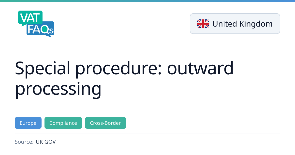 The UK guidance explains the special procedure for outward processing, which allows goods to be temporarily exported from the UK for repair or processing. It outlines the rules, application process, authorisation, and duty calculation for such movements, covering both the UK and EU/Northern Ireland contexts.