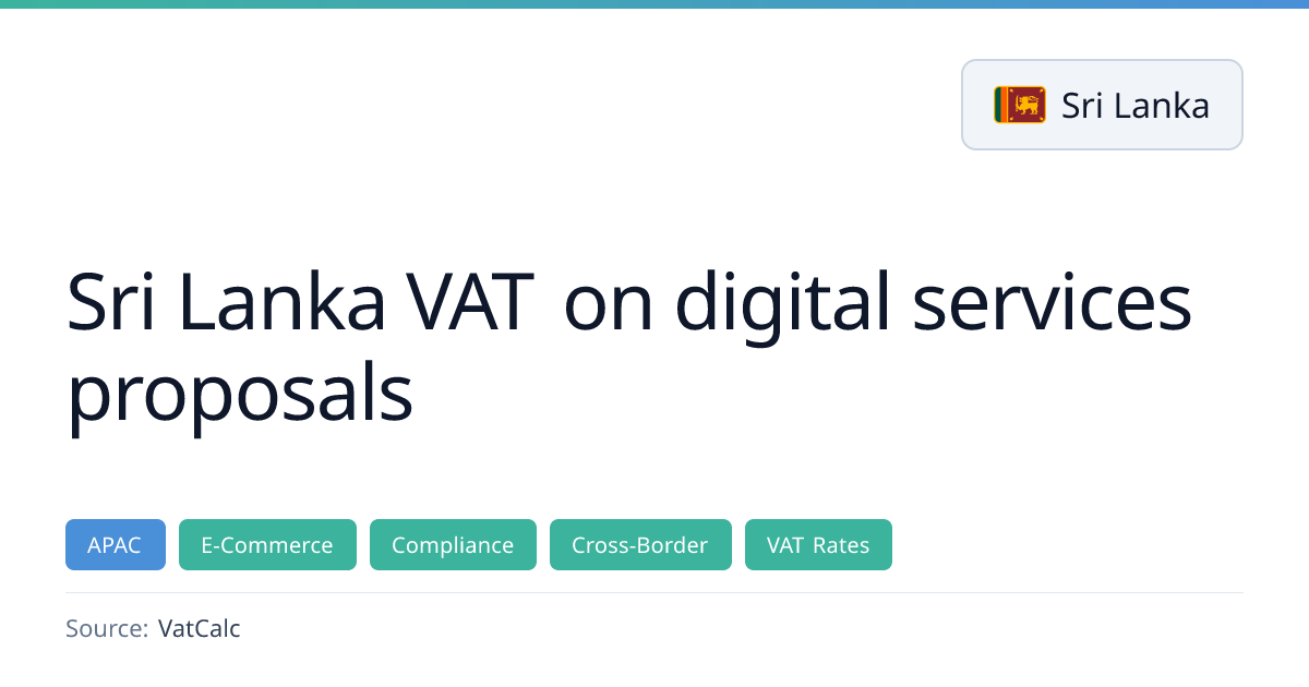 Sri Lanka has postponed the introduction of VAT on non‑resident digital services to 1 July 2026, from the originally planned 1 April. The amendment imposes an 18 % VAT on B2C digital and electronic services, aligning the country with over 120 other jurisdictions. Guidance on registration and compliance will be released in 2027, while local providers already pay 18 % VAT and B2B services are expected to be zero‑rated.