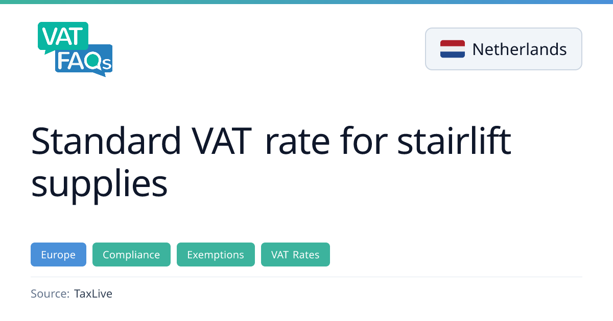 A Dutch court decision confirms that the reduced VAT rate for aids does not apply to stairlifts. The reduced rate is limited to wheelchairs, crutches, standing chairs and high‑bed mattresses, while stairlifts are subject to the standard VAT rate. The ruling clarifies the interpretation of the table post and has immediate compliance implications for suppliers.