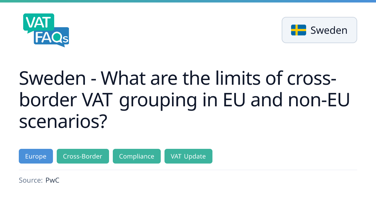 This article examines the constraints on cross‑border VAT grouping in Sweden, addressing both EU member states and non‑EU jurisdictions. It outlines the legal framework and practical implications for businesses operating across borders.
