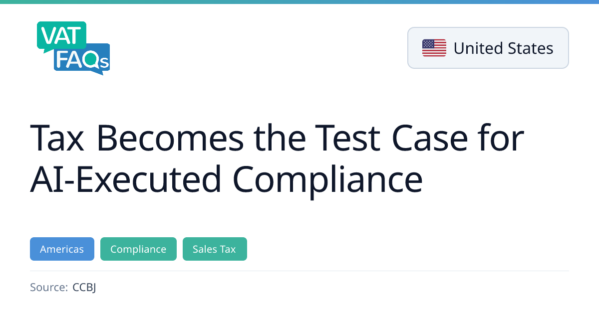 The article discusses how AI is transforming tax compliance, moving from insight to execution in regulated workflows. It highlights the scale of U.S. sales and use tax obligations across 19,000 jurisdictions and the potential for AI to cut routine reporting work by up to 65%. The piece emphasizes that tax professionals will retain final accountability while focusing on advisory roles.