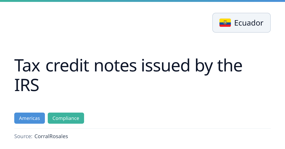 On March 31 2026 the Ecuadorian SRI issued a resolution that changes how dematerialized tax credit notes are handled. The new rules allow taxpayers to use up to 60 % of the amount payable on a tax return from credit‑note balances, except for Foreign Currency Outflow Tax (ISD) credits, and they remove the possibility of using credit notes to settle customs duties. Credit‑note balances will now appear in the securities account statement on the SRI portal.