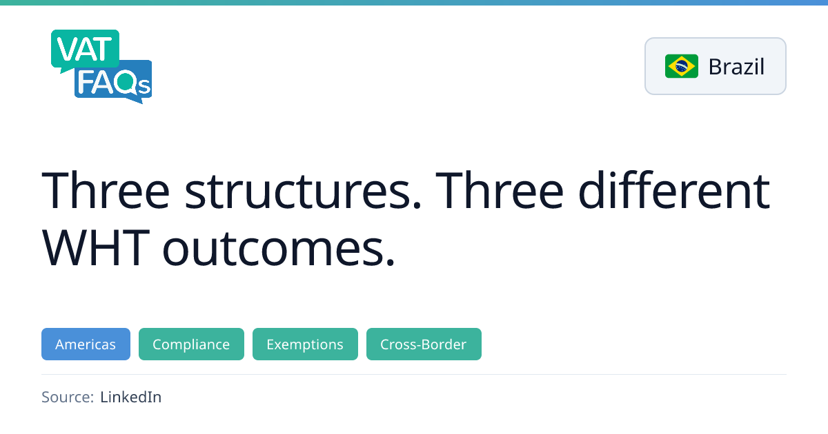Brazil’s new dividend withholding tax (WHT) has been in force for nearly a month, but questions remain about its application. The December 16, 2025 Q&A confirms that dividends paid to foreign governments, sovereign funds and social‑security‑benefit managers are exempt, and that the exemption also covers entities wholly owned by exempt investors. However, in structures where a Brazilian entity is held by a foreign holding company only partially owned by exempt investors, the exemption may not apply, potentially subjecting dividends to full WHT.