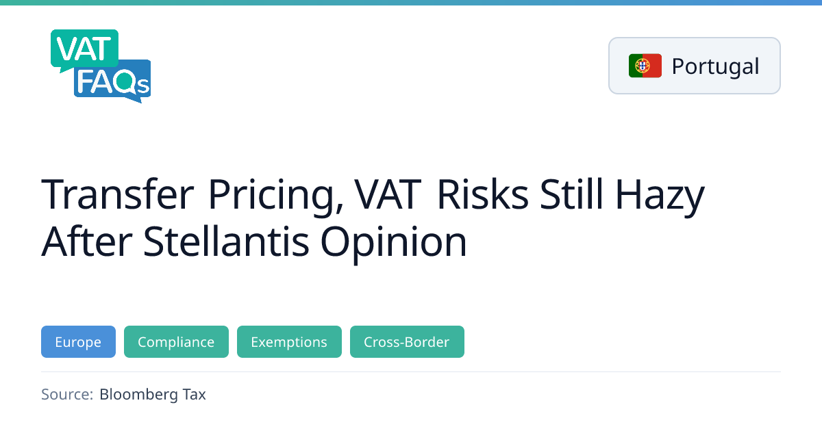 Bloomberg Tax’s commentary discusses how transfer pricing adjustments can create VAT exposure, citing recent ECJ cases and a Stellantis Portugal Advocate General opinion. It explains that adjustments tied to specific goods or services may be subject to VAT, while purely profit‑based adjustments may not. The article advises multinationals to conduct structured reviews and maintain documentation to mitigate risks.