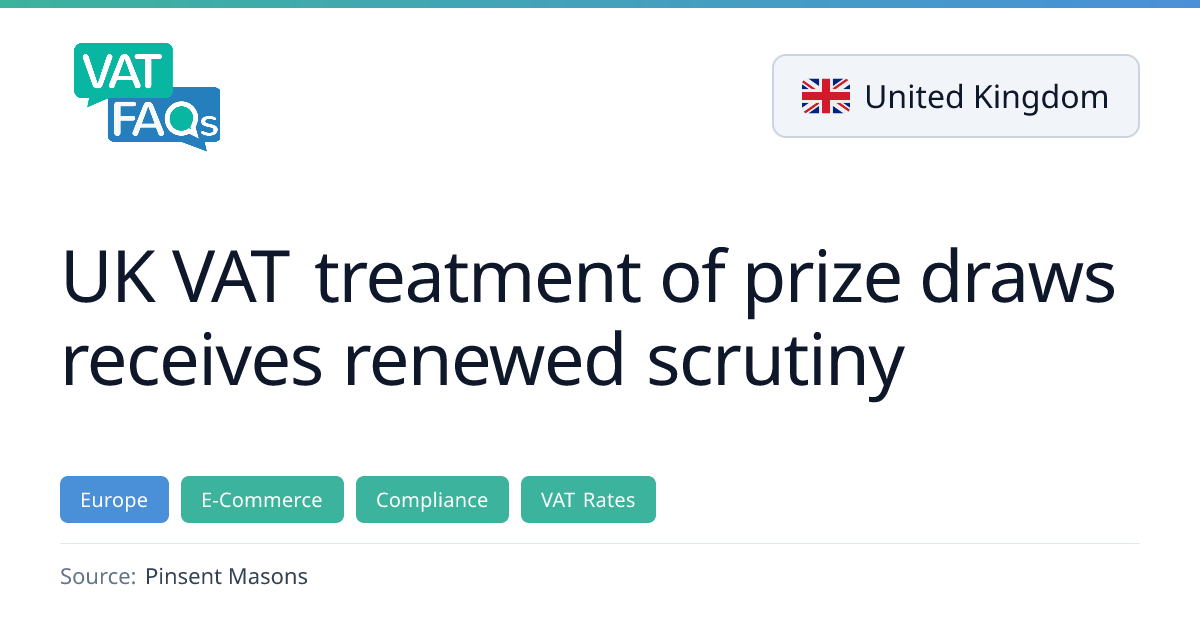 On 17 February 2026, HMRC confirmed that paid entries in prize draws are subject to the standard 20% VAT rate.