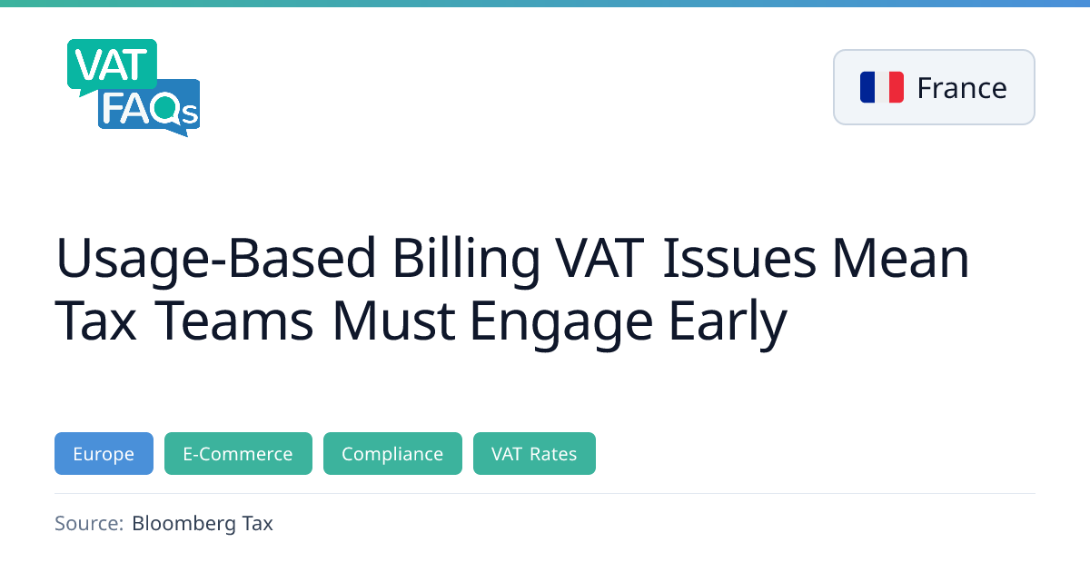 The article explains how usage‑based billing models—common in AI and SaaS—create complex VAT timing issues. It outlines when VAT is due for prepaid credits, hybrid pricing, tiered discounts, and the risks of delayed data processing. Tax teams are urged to embed VAT rules into billing workflows early to avoid compliance gaps.