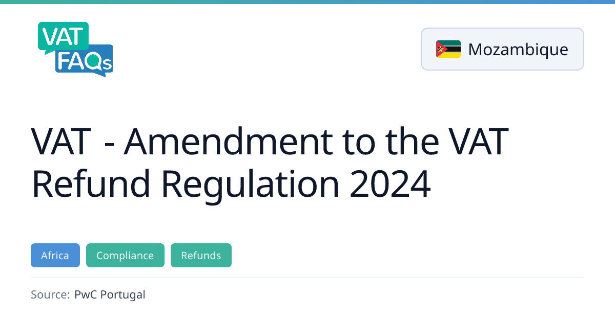 Mozambique’s Decree 52/2025 amends the VAT Refund Regulation, tightening documentation requirements and introducing new procedures for suspension notifications and special regimes for mining and oil sectors. The changes take effect on 29 January 2026 and include reduced refund periods for diplomatic missions and new security deposit obligations.