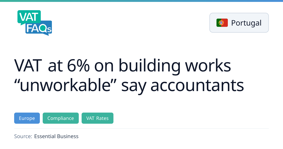 Portugal’s government has drafted a bill to cut VAT on construction for own permanent housing to 6%, but the Portuguese Association of Chartered Accountants (OCC) deems the proposal unworkable due to its reliance on post‑construction third‑party checks. The bill would apply only to properties for own use with a sale value not exceeding €648,000, and would require contractors to issue zero‑VAT invoices with developers self‑assessing. OCC warns that the uncertainty could force builders to absorb the difference between 6% and the standard 23% rate.