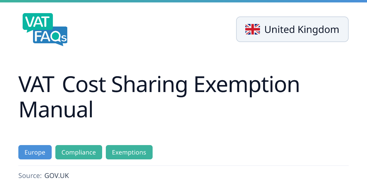 This HMRC internal manual provides guidance on the VAT cost sharing exemption, detailing the conditions, interpretation, and procedural aspects for applying the exemption. It serves as a reference for HMRC staff and VAT professionals on how to apply the exemption in practice.