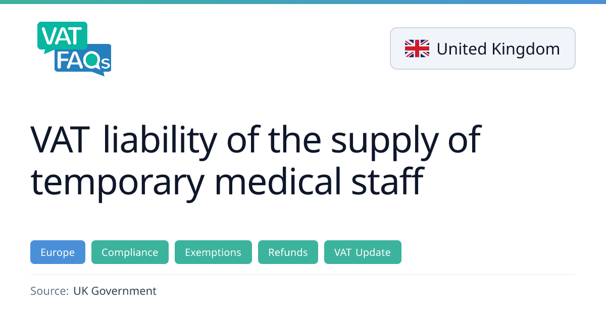 The UK Government brief confirms that the VAT exemption for deputising services extends to all temporary medical staff, including locum doctors supplied by employment businesses, following a 2025 First Tier Tribunal ruling. Businesses that have charged standard‑rate VAT on such supplies within the last four years can claim a refund via an error‑correction notification. The brief also outlines the steps for claiming refunds and the impact on recovered input tax.