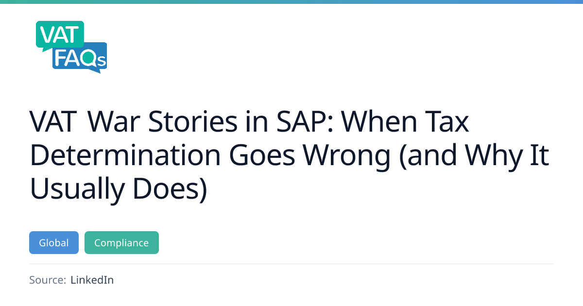 The post discusses how SAP's VAT logic can fail due to governance and design issues rather than system bugs. It highlights that VAT determination often appears to work but may still be incorrect, and that KGT’s in‑SAP VAT data analysis uncovers these problems.