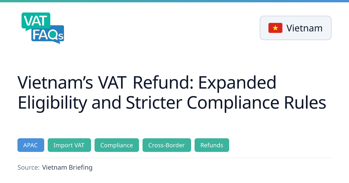 Vietnam’s 2025 VAT Law expands refund eligibility to investment projects, exporters, and 5%‑rate businesses with at least VND 300 million in accumulated input VAT, while tightening documentation and audit requirements. Key changes include removal of refunds for ownership or structural changes, stricter rules for deferred payments, and new limits on import‑export refund eligibility.