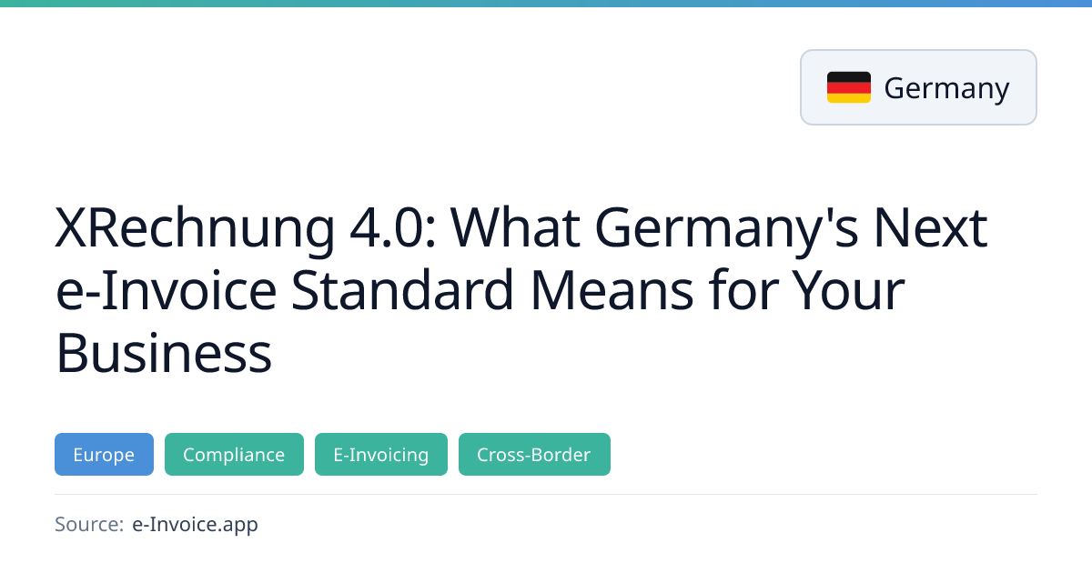 Germany is preparing XRechnung 4.0, the next major version of its national e‑invoice standard, to align with the revised EN 16931‑1:2026. The new standard will break the one‑order‑one‑delivery rule, add B2B‑specific fields, and will not be backward compatible with XRechnung 3.0. Businesses must plan for the transition as the German e‑invoicing mandate requires all e‑invoices by 1 January 2028, likely using XRechnung 4.0.